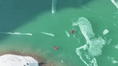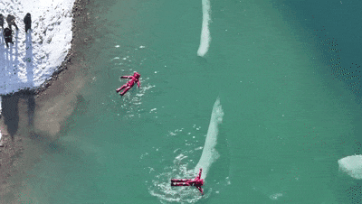 活脫脫一群可愛(ài)的“小龍蝦”在冰河里撒歡
