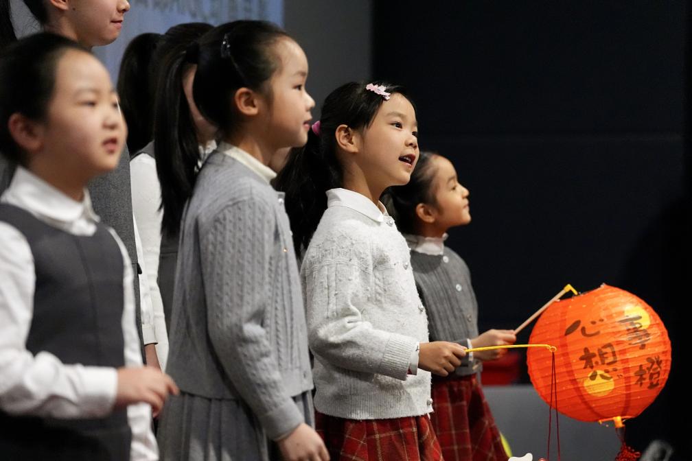 3月1日,小朋友在電影《團圓令》的觀影活動上演唱主題曲。新華社記者 邢廣利 攝
